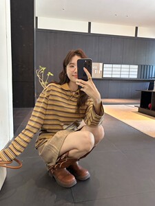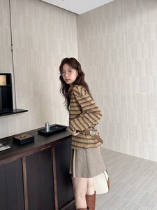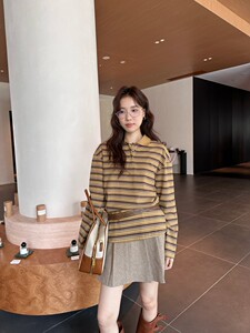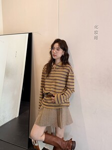 DIGM | 2025秋冬学院风条纹POLO衫翻领纽扣针织衫长袖T恤女A32107