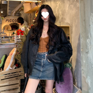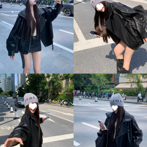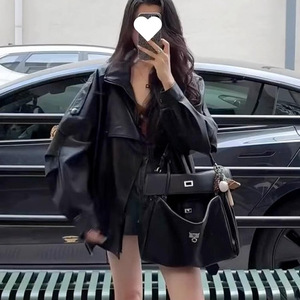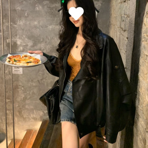 黑色复古机车翻领pu皮衣外套女高级酷飒风2025春秋新款皮夹克上衣