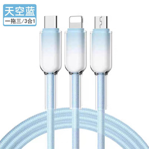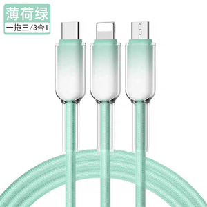 多色冰晶渐变120W快充数据线编织高颜值6A充电线一拖三手机充电线