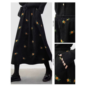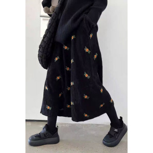 复古碎花裙a字灯芯绒半身裙女秋冬a字冬天配毛衣半身长裙