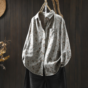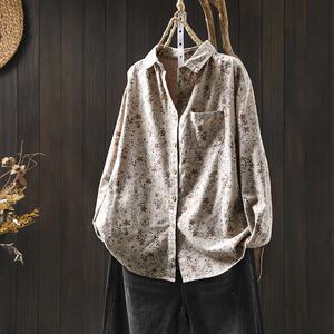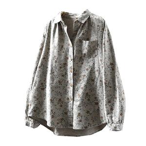 纯棉磨毛碎花衬衫女长袖宽松显瘦2025秋季新复古文艺减龄打底衬衣