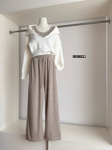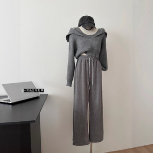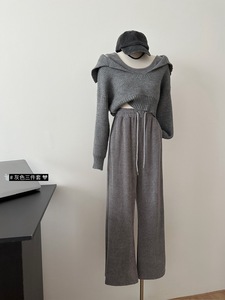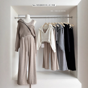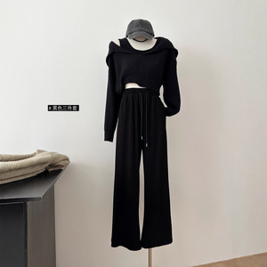 慵懒风毛衣针织衫吊带背心秋冬休闲长裤套装三件套2025秋季新款