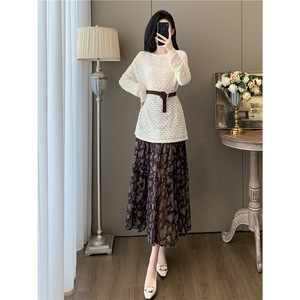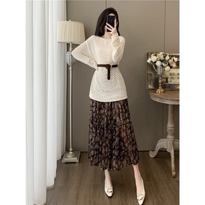 深圳南油海边度假风套裙女2025秋季镂空长袖上衣碎花半身裙两件套