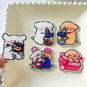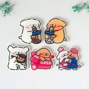 韩国线条小狗冰箱贴创意可爱个性亚克力装饰配件钥匙扣挂件diy
