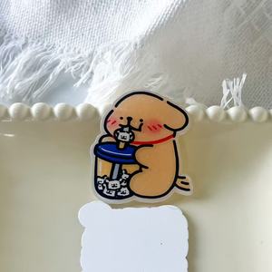 棕狗喝奶茶