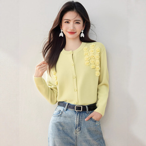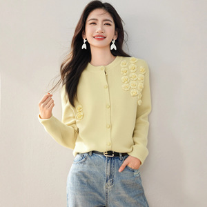 2025秋冬新款小香风立体花朵长袖针织开衫毛衣外套女独特别致上衣