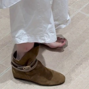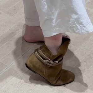 羊皮版~真皮内增高褶皱瘦瘦马丁靴女法式复古磨砂皮带扣西部短靴