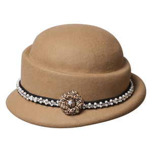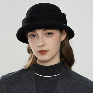 新英伦复古小礼帽短檐优雅羊毛礼帽女秋冬季时尚圆顶毛呢帽子批发