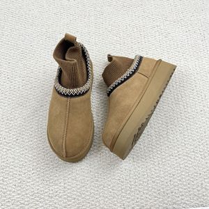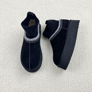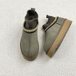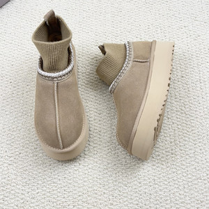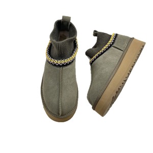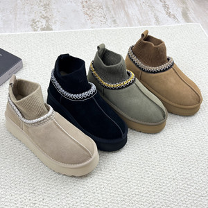 新款名族风毛线口加绒保暖增高棉鞋子真皮时尚松糕底短筒跨进外贸