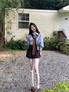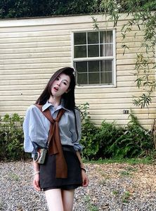 法式独特精致蓝色条纹衬衫女2025早秋新款气质高级感时髦洋气套装