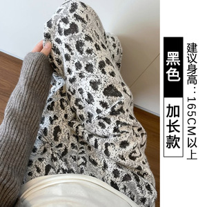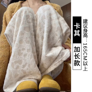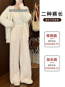 粉色豹纹阔腿裤女秋2025新款高腰垂感宽松阔腿裤小个子显瘦直筒裤