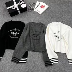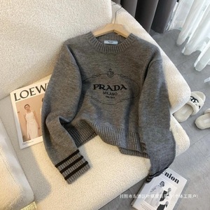 刺绣毛衣针织衫秋冬新款2025字母长袖百搭圆领套头洋气上衣冰丝新