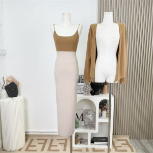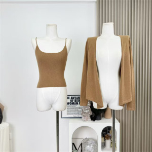 驼色开衫+吊带
