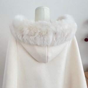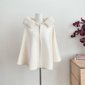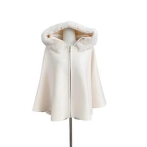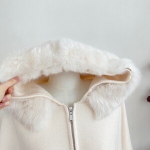 2025实拍秋季毛领拉链针织连帽斗篷大衣毛呢外套