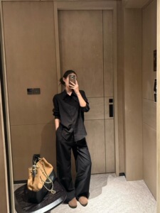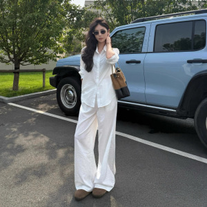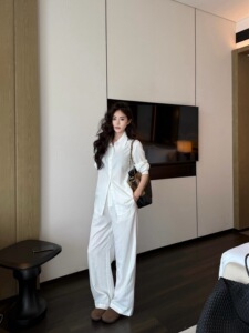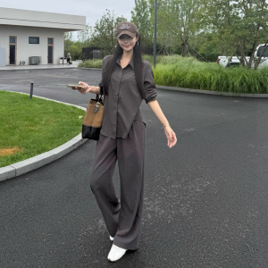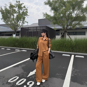 RHGD实拍 新款老钱风休闲衬衫套装气质宽松松弛感阔腿裤两件套