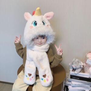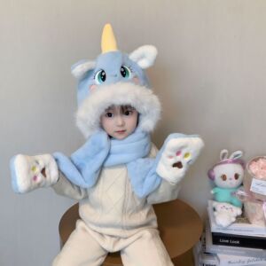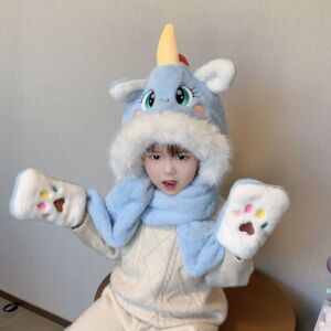 冬季儿童帽子小马宝莉三件套可爱独角兽三合一护耳保暖防寒毛绒帽