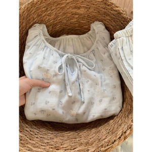 韩系纯欲甜美碎花小兔睡衣女秋季新款宽松休闲舒适长袖家居服套装