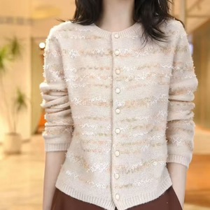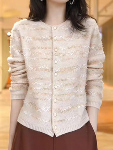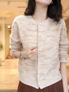 早秋季提花小个子短款圆领2025外套上衣新款针织时尚开衫显瘦毛衣