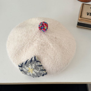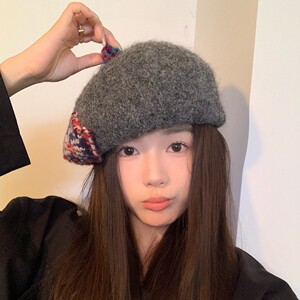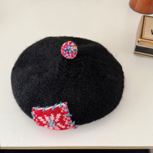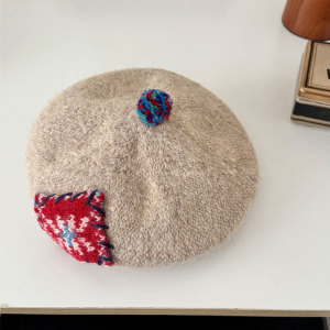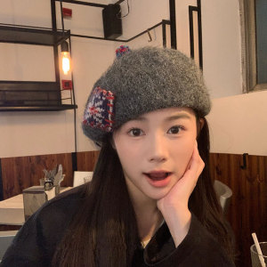 新款羊绒贝雷帽子女款复古小众补丁保暖毛线帽秋冬季画家帽批发