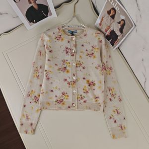 P家深圳南油高货 明星同款 重工小碎花印花圆领棉羊毛开衫外套女