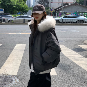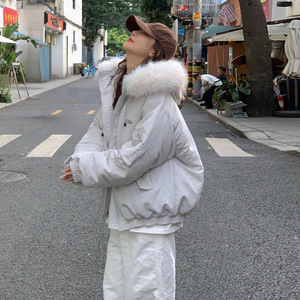 明星同款大毛领工装派克羽绒棉服女2025新款冬季保暖加厚棉袄外套
