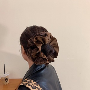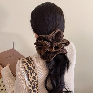 豹纹缎面大肠发圈四层超大号高级感丸子头发绳马尾扎头发头绳女