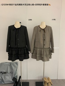 【WOW】韩系千金风精致木耳边背心连衣裙+短外套套装(含3%羊毛)