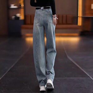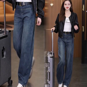 怀旧复古蓝牛仔裤女春秋季2025新款高腰弯刀裤香蕉裤阔腿宽松裤子