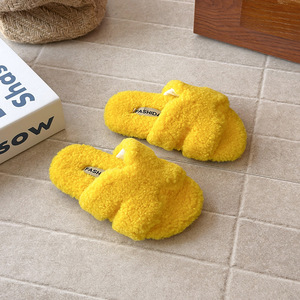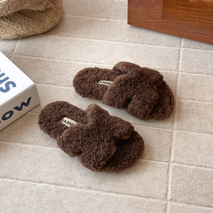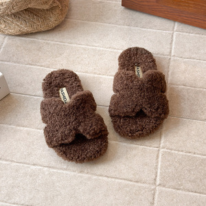 韩国秋冬新款法式复古女童洋气外穿毛毛鞋羊羔毛拖鞋小众加绒拖鞋