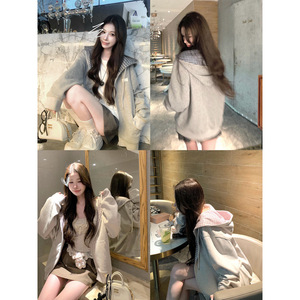 美式复古刺绣字母开衫外套女秋季2025新款宽松休闲简约拉链卫衣潮