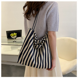 韩版复古文艺手提包简约小清新条纹单肩包休闲时尚大容量购物袋包