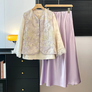 好质量中式汉服重工刺绣盘扣马甲圆领斜襟长袖上衣搭配鱼尾裙套装