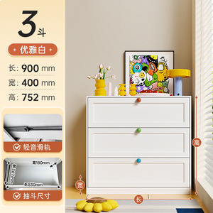 白色上玻下斗三斗柜50长【彩色球形把手】