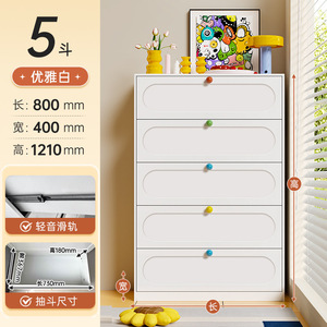 白色上玻下斗五斗柜80长【彩色球形把手】