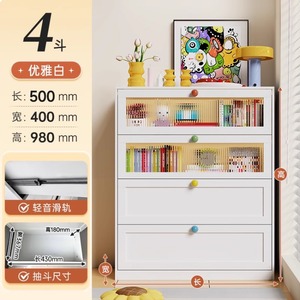 新夹缝款-白色方形四斗柜50长【彩色球形把手】