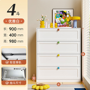 白色上玻下斗四斗柜90长【彩色球形把手】