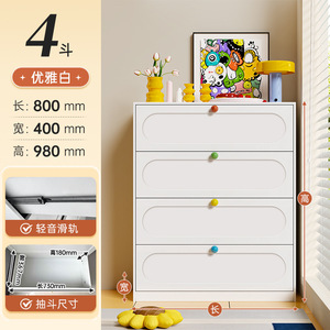 白色上玻下斗四斗柜80长【彩色球形把手】
