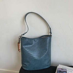外贸女2025秋季新款编织手提单肩腋下包复古水桶包流行百搭斜挎包