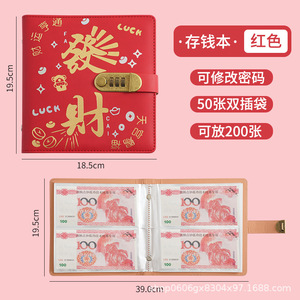 存钱夹钱册现金存钱本大容量钞票收纳册密码锁理财收藏册可放现金