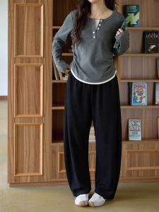 大码女装灯芯绒阔腿锥形弯刀裤胖mm宽松休闲舒适秋冬百搭纯色裤子