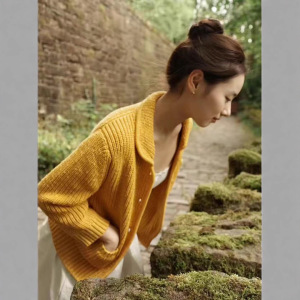 复古甜美气质翻领长袖针织开衫女俏皮减龄日常百搭时尚显瘦短上衣