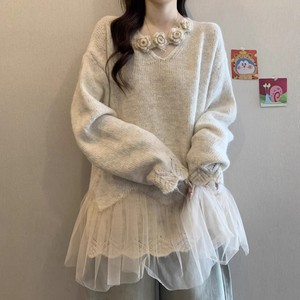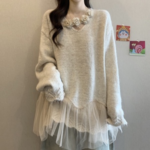 花朵立体针织衫2025流行毛衣秋冬新款中长款慵懒洋气宽松上衣减龄