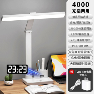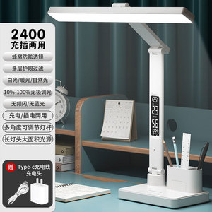 国aa级台灯护眼学习带时钟儿童防近视宿舍大学生充电书桌阅读