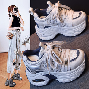 透气网面增高厚底老爹鞋女2025新款百搭圆头系带休闲运动鞋潮鞋女