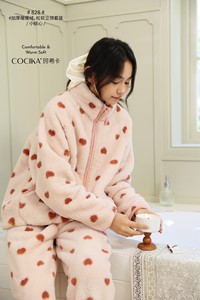 828冬季新款睡衣女立领拉链套装加绒加厚珊瑚绒保暖慵懒家居服外