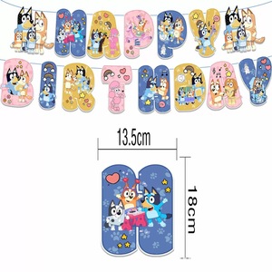 跨境亚马逊蓝色狗 主题生日节日派对装饰用品插旗螺旋气球横幅套