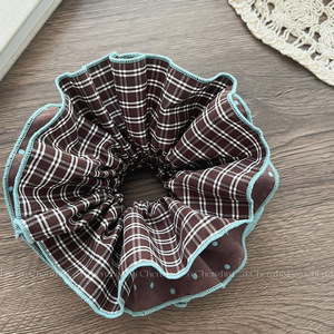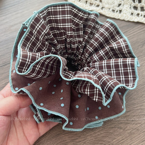 日韩学院风格子大肠发圈设计感撞色波点发绳慵懒风皮筋头花头饰