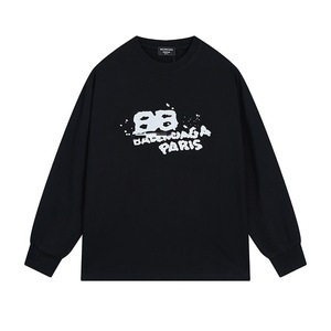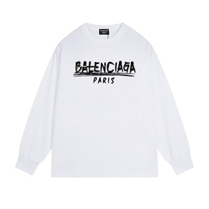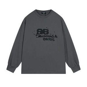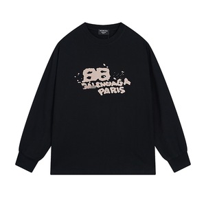 跨境B家新款涂鸦印花logo字母260克精梳棉双纱男女同款长袖卫衣T