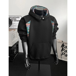 民族风重工卫衣男2025春秋新款撞色设计感重磅硬挺外套连帽衫
