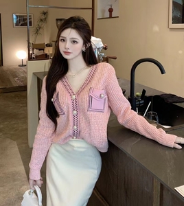 秋季小香风法式毛衣外套女纯色减龄设计高级感百搭针织开衫上衣潮